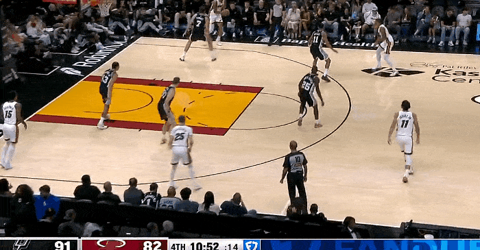 文班亚马强攻阿德巴约漂移抛投,随后顶着两人翻身跳投命中