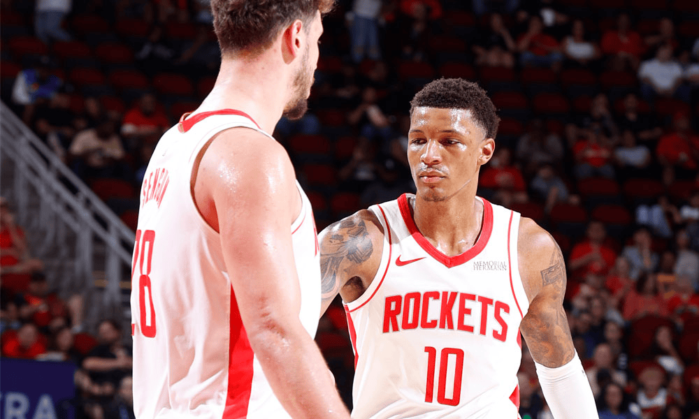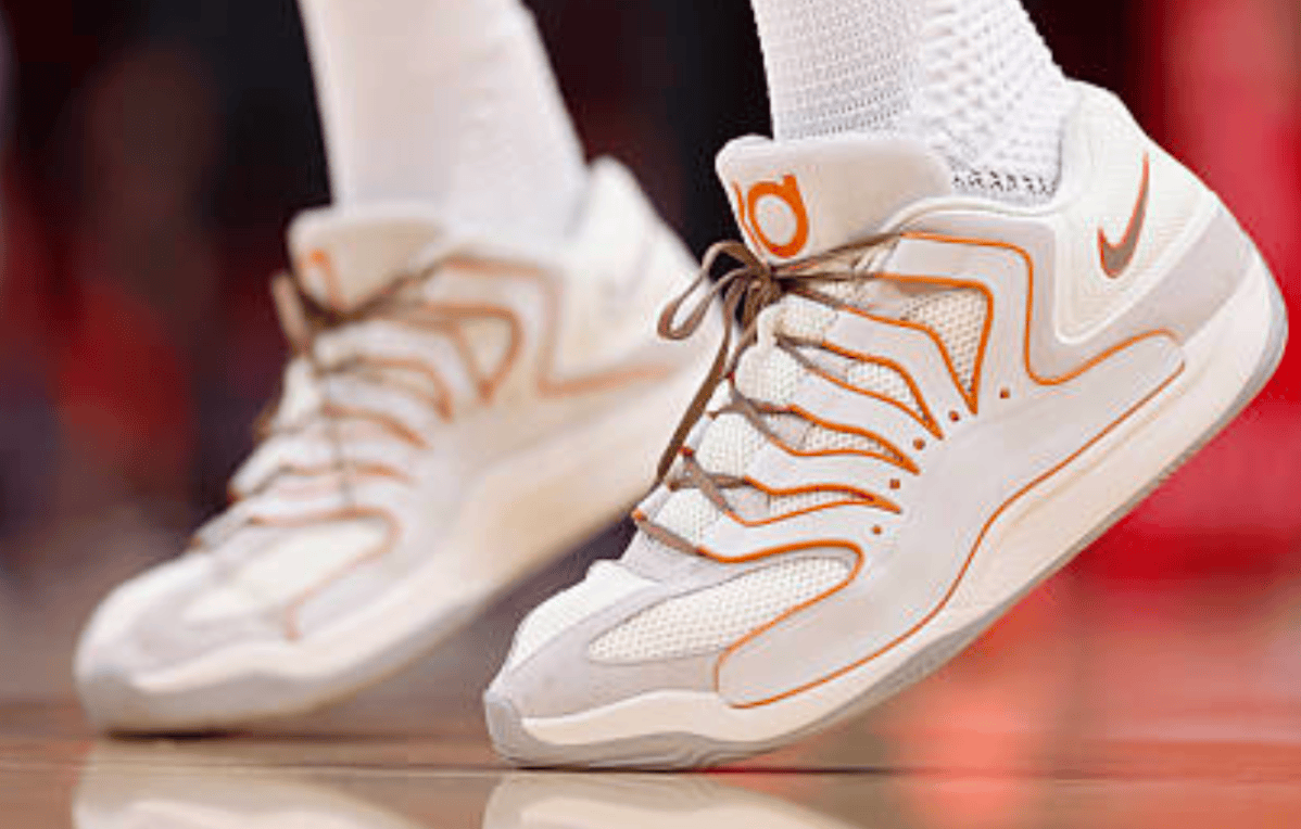 杜兰特穿着德克萨斯大学长角牛配色KD18,迎来火箭首秀