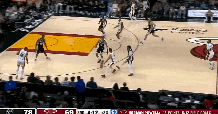 鲍威尔轻松突破上篮又投进弧顶三分,已砍下18分4篮板3助攻