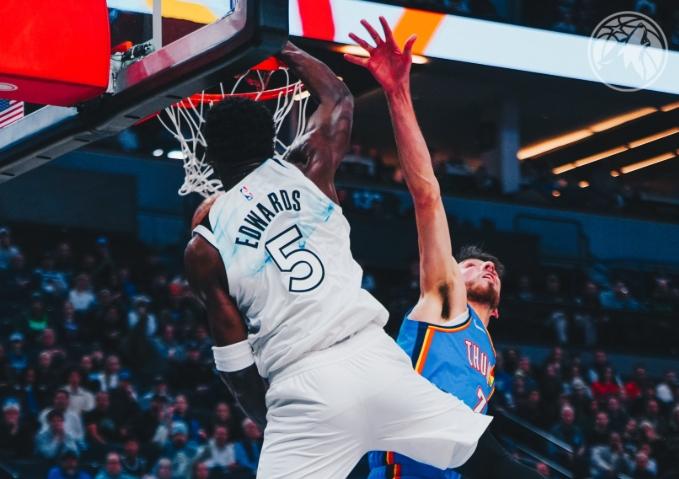 挑战巨塔!香农反击顶着切特打进得到11分,森林狼领先17分
