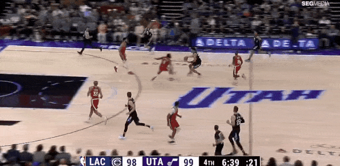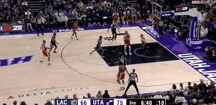 西蒙斯手递手助攻鲍威尔命中第4记三分,快船再次追至10分