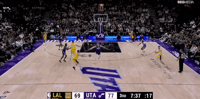 虎扑 44回复东契奇分球再次出现失误,克拉克森连拿6分领先湖人14分