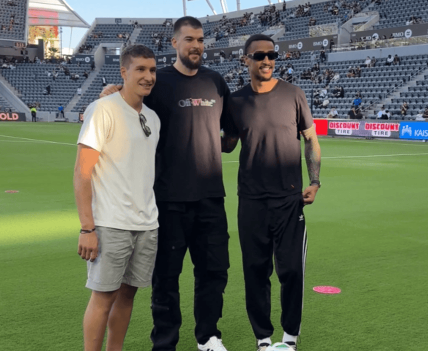 快船社媒晒波格丹、祖巴茨、科林斯共同观战洛杉矶FC的视频