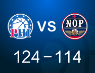[赛后]鹈鹕114-124 76人,贝34分6板3助,恩比德40分11板4助