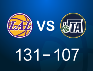 [赛后]爵士107-131湖人,希布韦29分17板3助,艾顿22分10板3冒