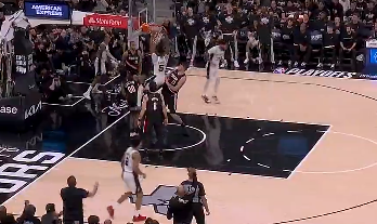 罗威制霸禁区双手暴扣,还剩11秒开拓者领先马刺3分