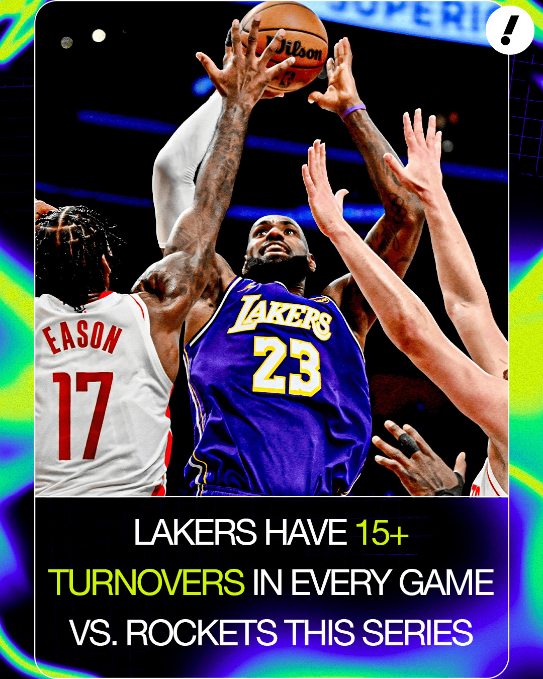 火箭半场领先湖人9分,其中抢断10-1、利用失误得分16-6