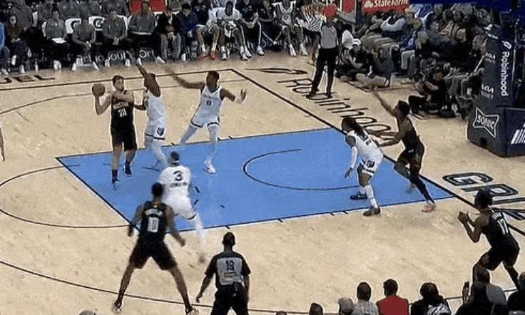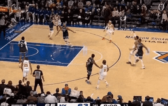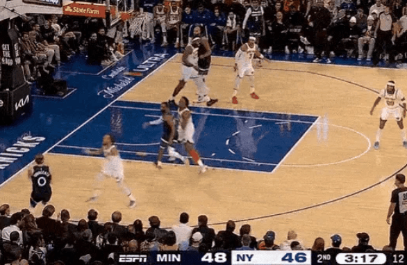 唐斯无惧兰德尔扑防三分跳投命中,再次将比分反超1分