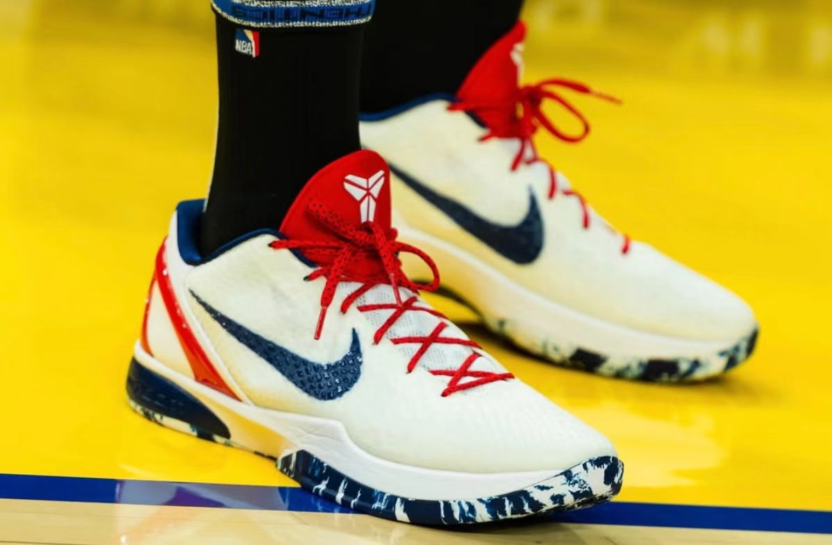 斯蒂芬-库里穿着美国队配色科比6进行赛前热身