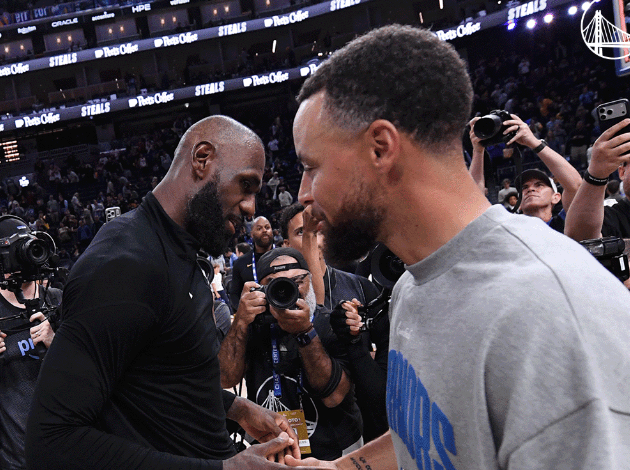 勇士再次晒出库里和詹姆斯握手照:篮球运动的两个伟大人物