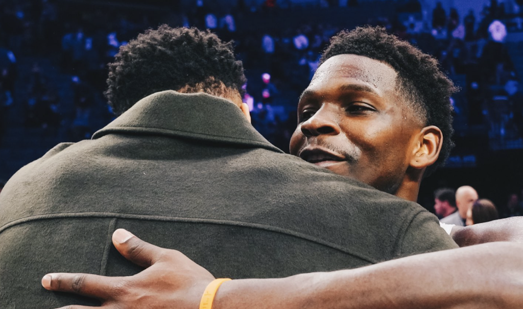 惺惺相惜!森林狼官媒晒爱德华兹与扬尼斯赛后拥抱照