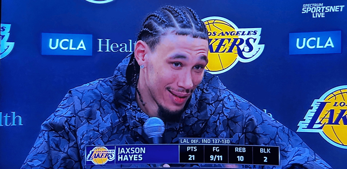 海斯砍下湖人生涯第一次20+10板,也是生涯第三次20+10板