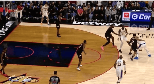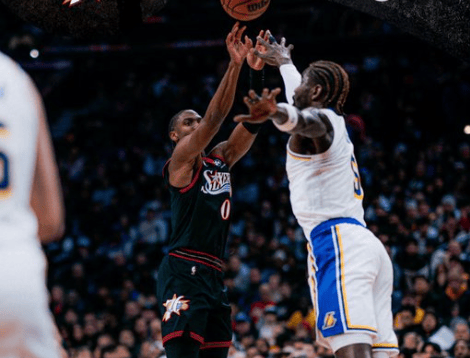 马克西突破顶到里夫斯的嘴仍旧上进,76人开局领先湖人10分