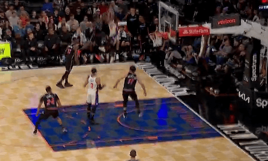 哈特极限救球超远三分投进,尼克斯重新领先到两位数分差