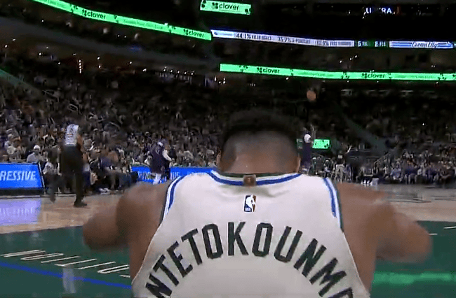 字母哥上篮不中未响哨,沮丧地坐在地上放弃回防