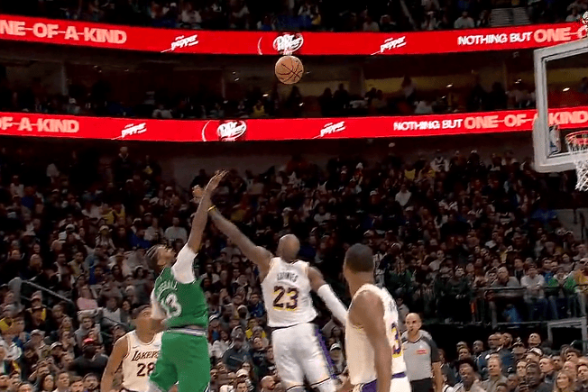 詹姆斯底角三分终于投进,湖人末节全队投篮6中1得到6分