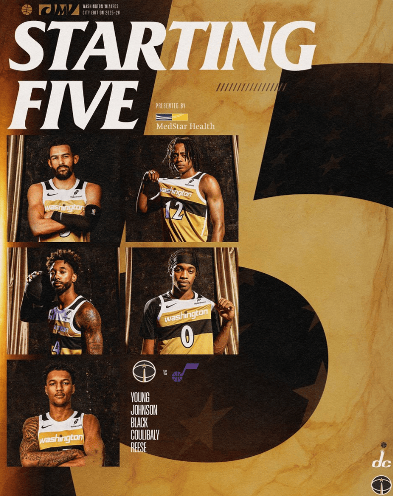 奇才首发:特雷-杨、约翰逊、布莱克、库利巴利和里斯
