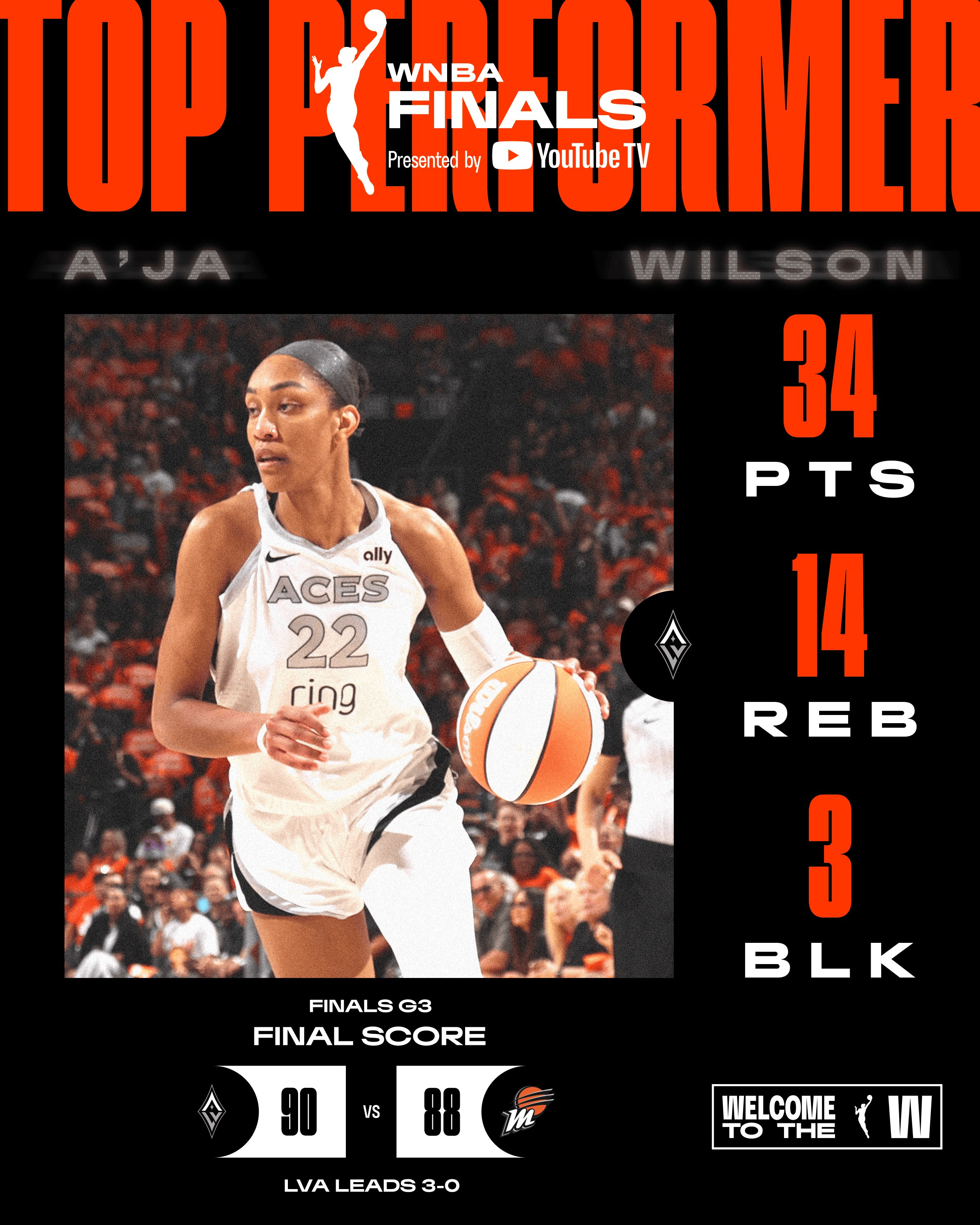 Instagram 48回复阿贾-威尔逊连续两场25+分10+板,成为WNBA总决赛历史第一人