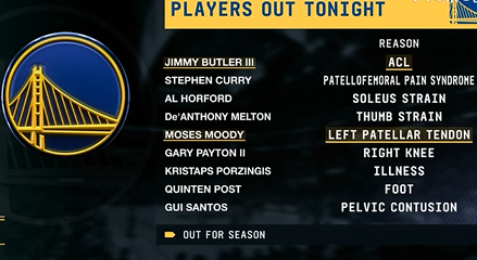 伤兵满营!勇士伤情:2人缺席本赛季,7人暂时无法出战