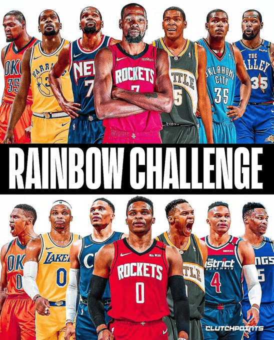 CP:威斯布鲁克加入杜兰特,共同跻身彩虹球衣俱乐部