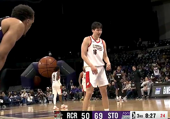 杨瀚森G联赛篮下打进拿到首分,目前混音13-34落后国王