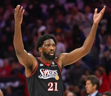 恩比德包办76人开局所有得分,随后高扬双臂调动主场气氛