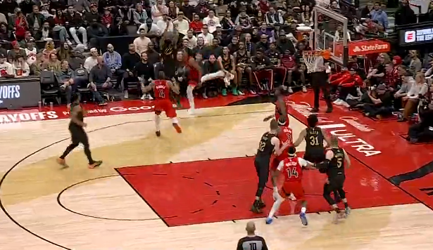 离谱判罚!杰伦-约翰逊防守踩出界,福斯特判罚尼克斯出界