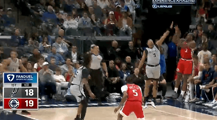 巴恩斯篮下接球拉杆上篮打进,马刺领先12分打停掘金