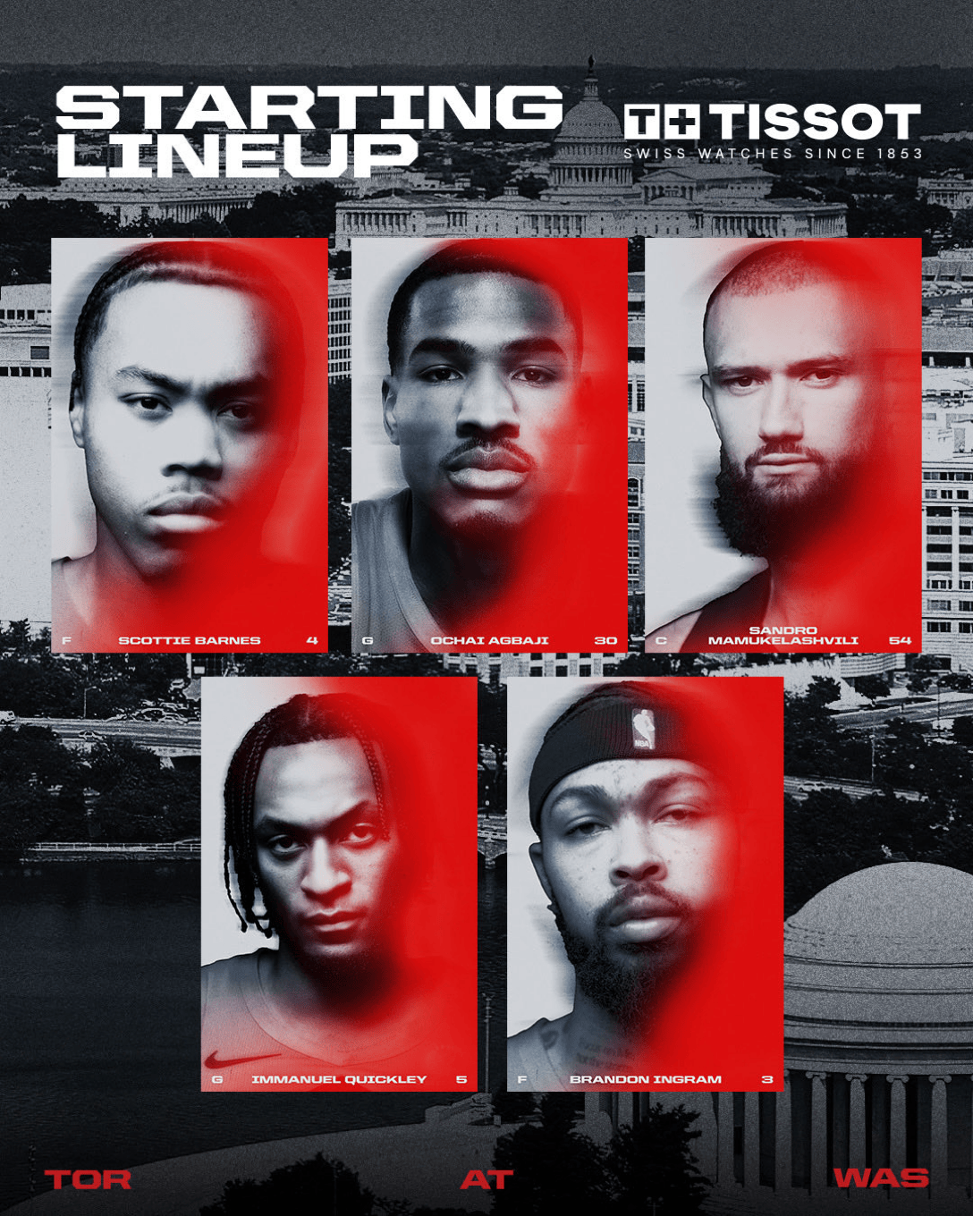 猛龙首发:巴恩斯、奎克利、英格拉姆、阿巴基、马穆