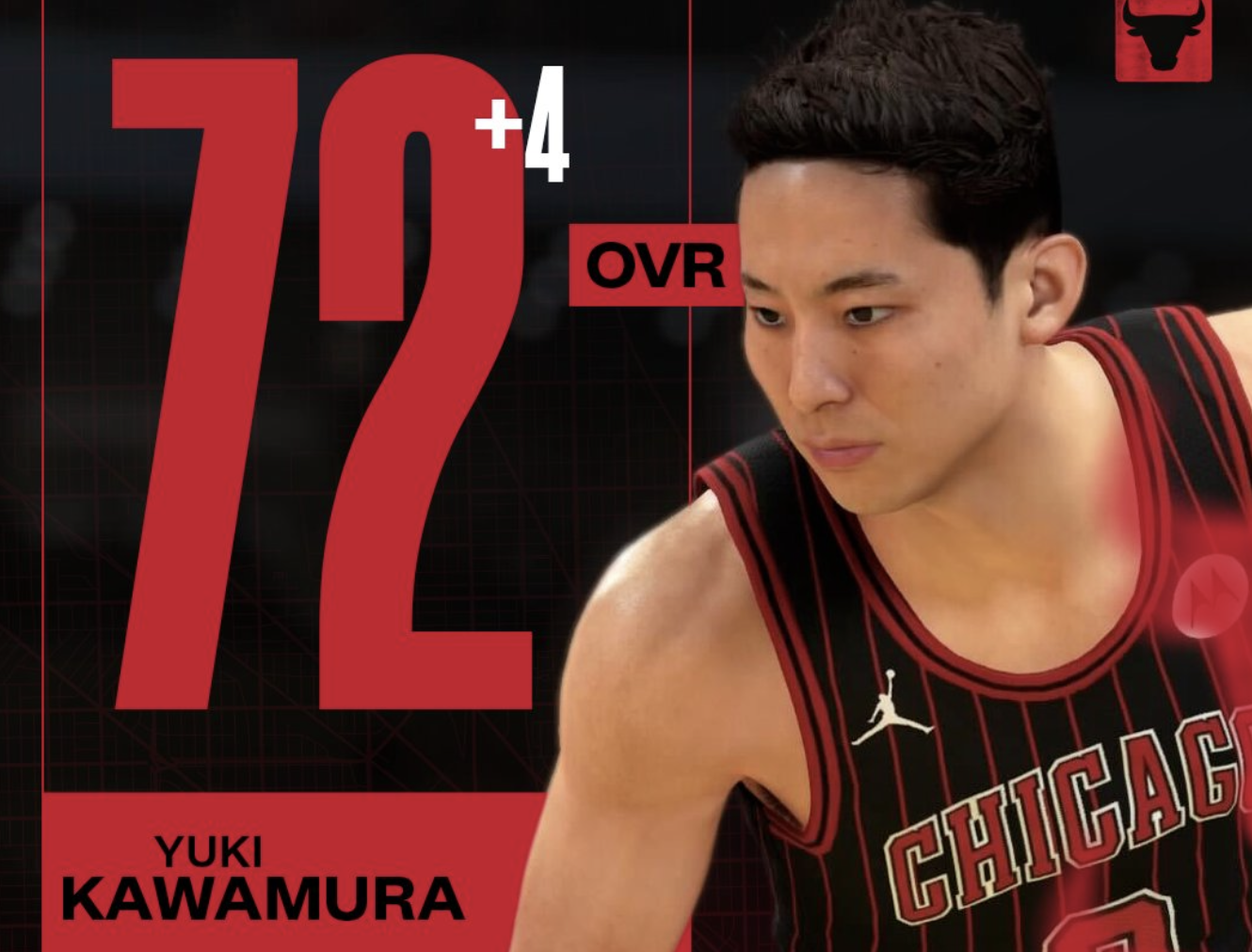 增加了4点!公牛官方庆祝河村勇辉的2K26能力值上升至72
