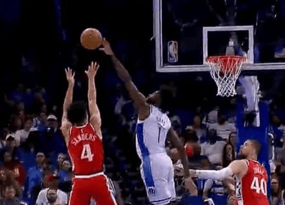 长臂怪!桑德斯转身欲跳投,艾萨克搞搞跃起直接扇下篮球