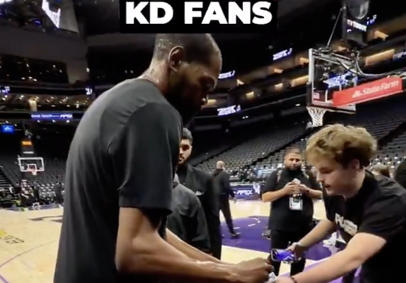 优质偶像!火箭官媒晒杜兰特赛前与球迷签名视频:kd送上爱意