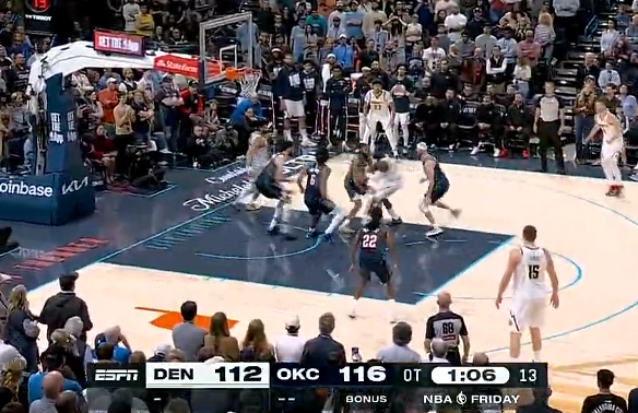 卡鲁索最后一攻抛投不中,雷霆和掘金常规时间战平进入加时