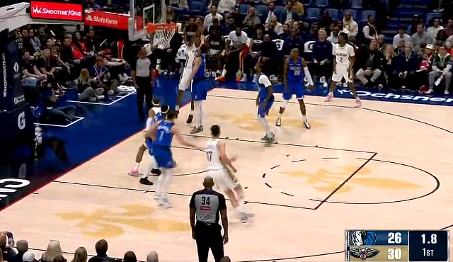 奎因行进间抛投压哨颠进,鹈鹕首节以32-26领先独行侠