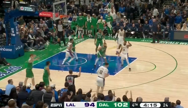 拉拉维亚空位三分投进,湖人末节打出一波10-1追至5分