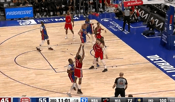 哈登45度坚决出手三分命中,快船下半场开局将分差缩小至7分