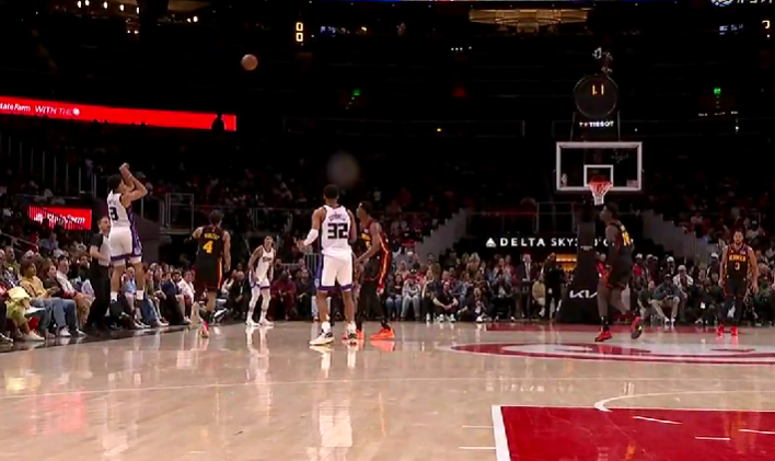 基利安-海斯超远三分压哨投进,国王三节结束82-88落后老鹰