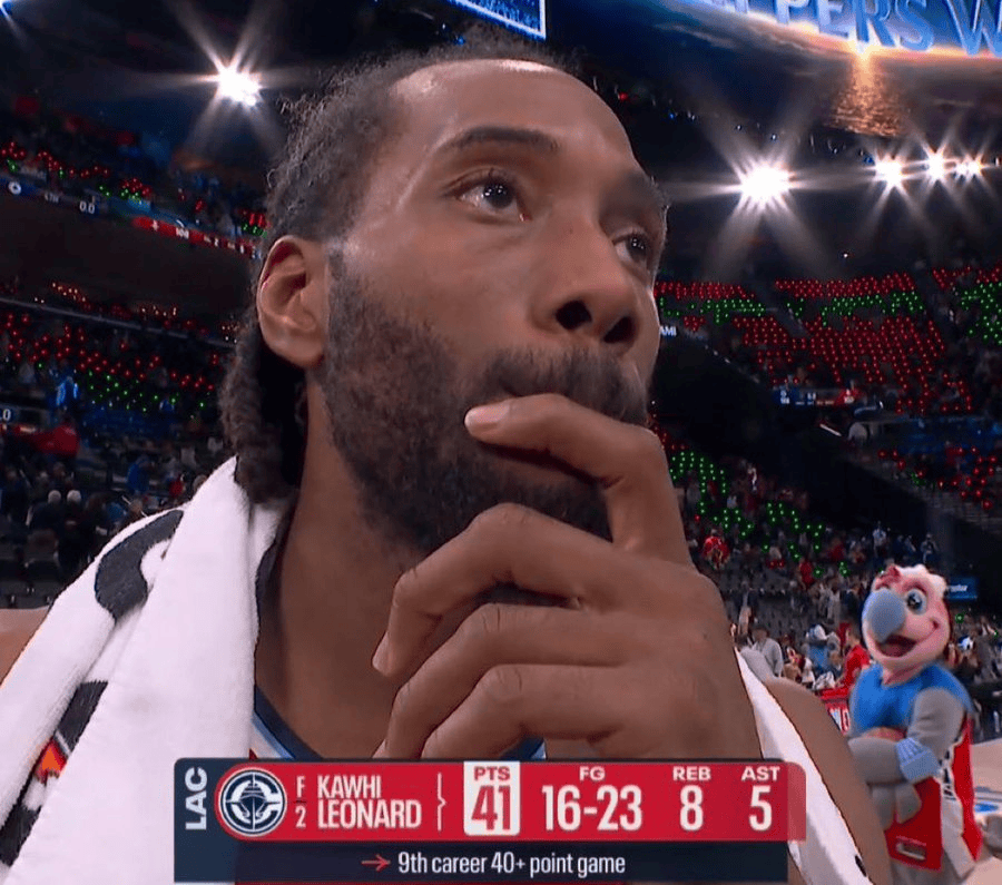 才9场!伦纳德今日砍下41分8板5助,得到生涯第9场40+