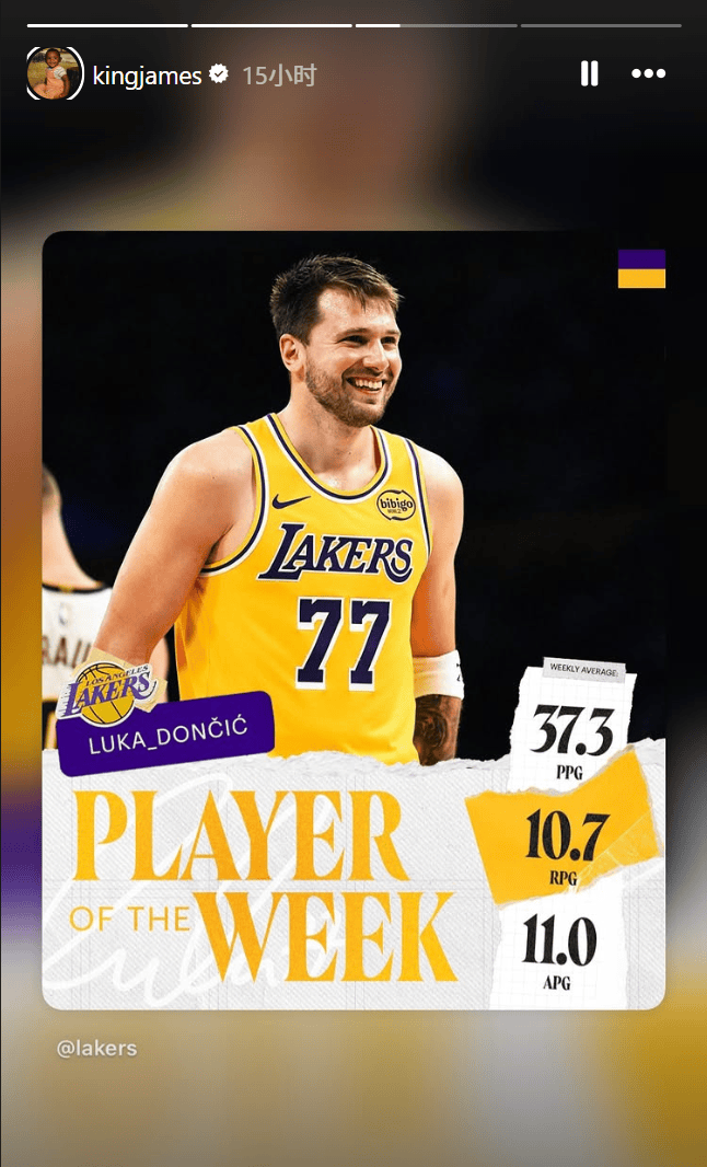实至名归!詹姆斯ins转发海报祝贺东契奇当选上周周最佳球员