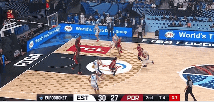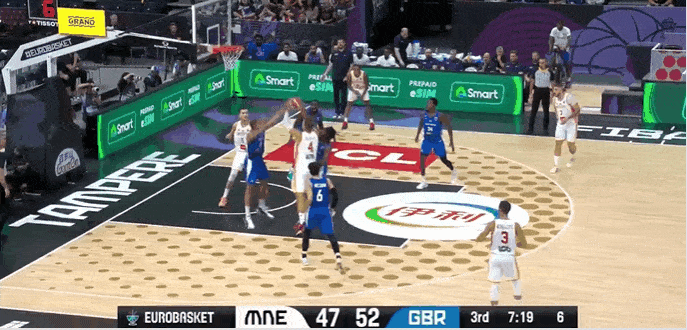 乔萨尔大跨步杀入禁区,利用欧洲步命中压哨2分