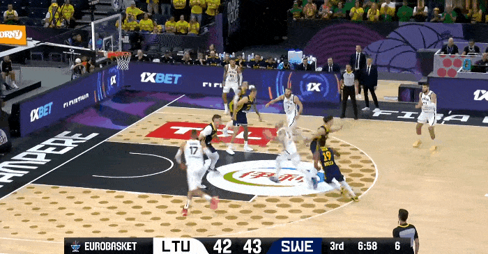 瓦兰丘纳斯篮下连续打进砍下14分,立陶宛一波17-4反超瑞典