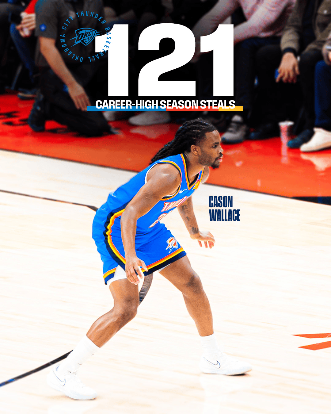 雷霆官方:华莱士本赛季121次抢断,创造生涯单赛季最高纪录