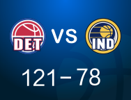 [赛后]步行者78-121活塞,布拉德利12分3板1助,杜伦15分8板4助