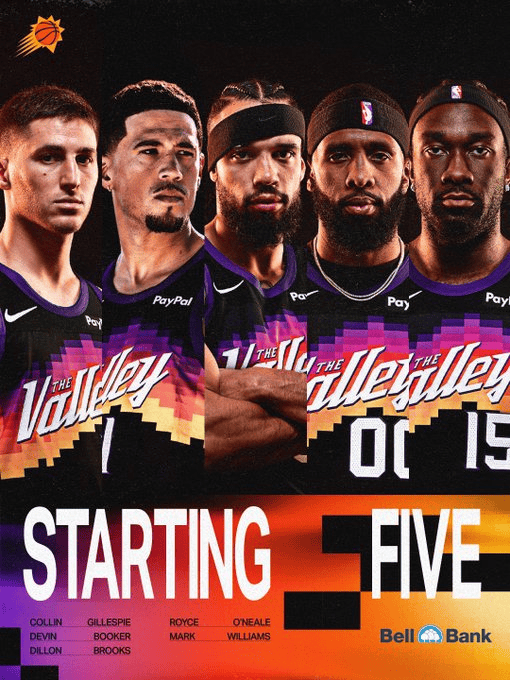 太阳首发:吉莱斯皮、布克、狄龙、奥尼尔、马克-威廉姆斯
