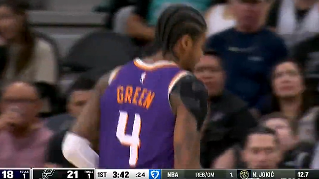 手感不错!杰伦-格林接球三分命中,开局5中4已经得到9分