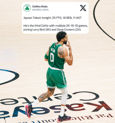 虎扑 15回复杰森-塔图姆第2节砍下10分8篮板,半场拿到13分12篮板4助攻