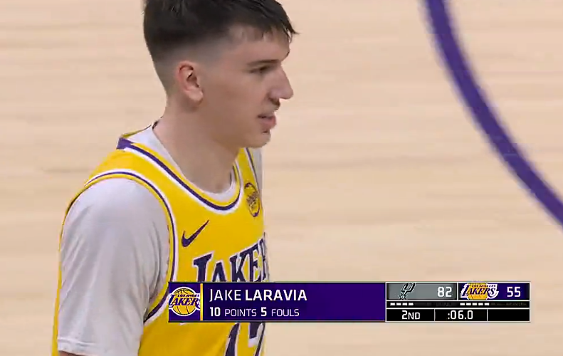 拉拉维亚上半场得到湖人全队最高10分,但已经身背5犯