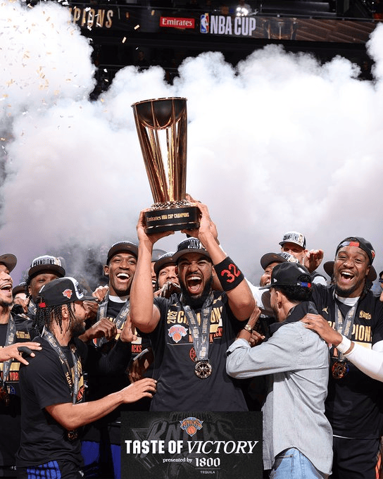 纽约,这是献给你的!尼克斯官方晒球员兴奋捧杯照💙🧡
