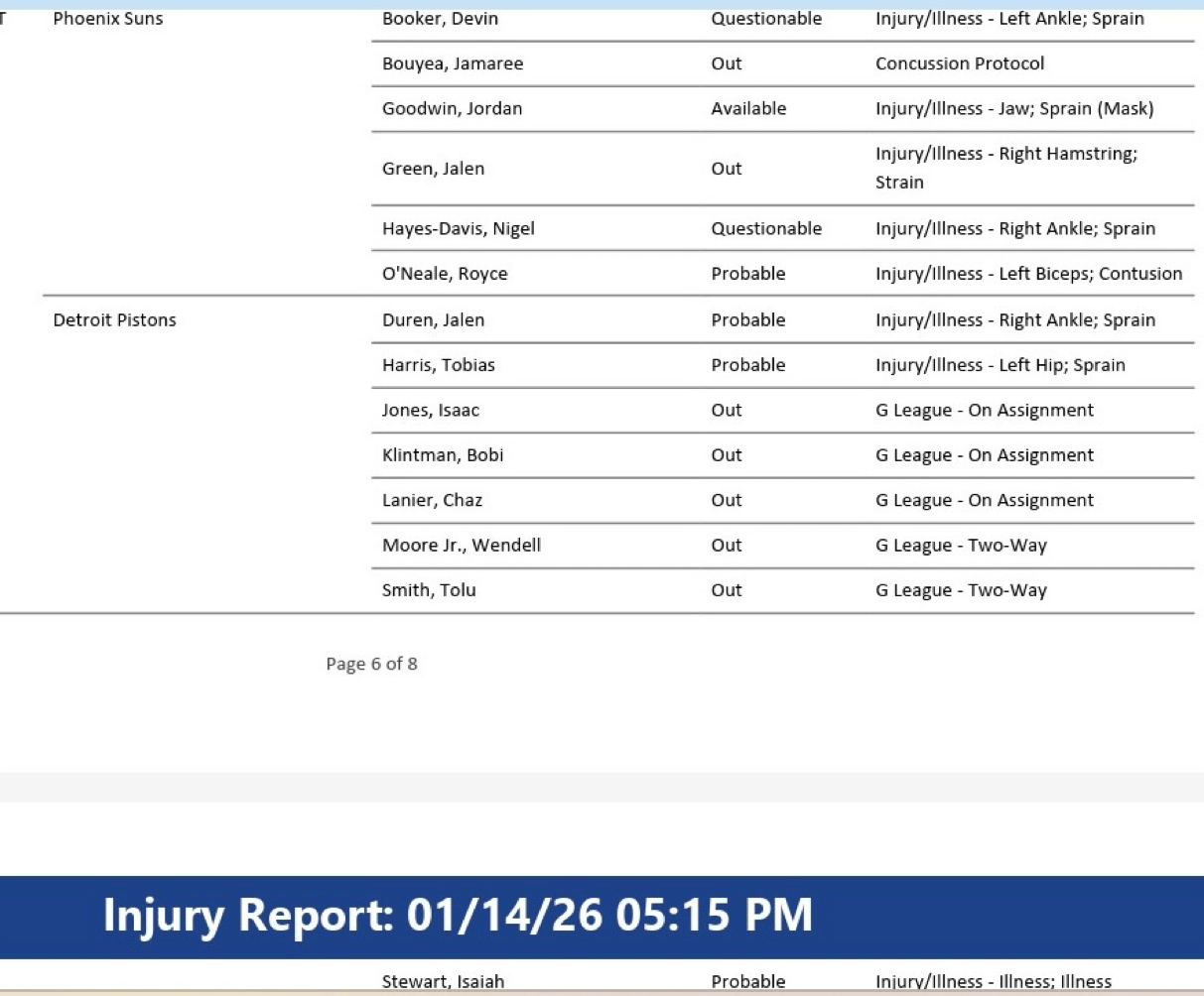 太阳伤病:古德温可出战,布克出战成疑,奥尼尔大概率出战