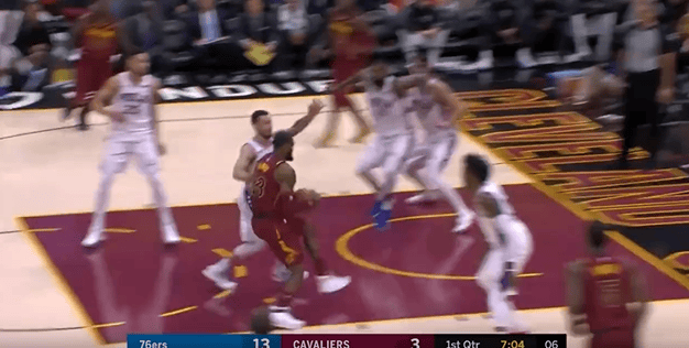 詹姆斯17年对阵76人集锦:30分13篮板13助攻!